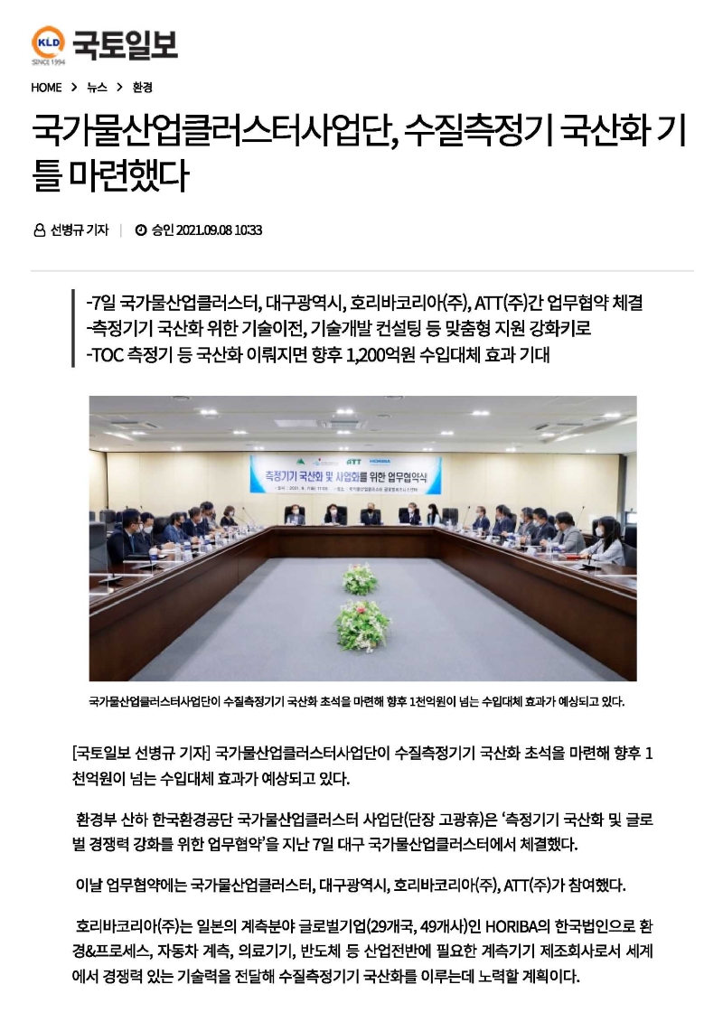 ´ë±¸±¤¿ª½Ã-Çѱ¹È¯°æ°ø´Ü ±¹°¡¹°»ê¾÷Ŭ·¯½ºÅÍ»ç¾÷´Ü-È£¸®¹ÙÄÚ¸®¾Æ¢ß-¿¡ÀÌÆ¼Æ¼¢ß°¡ ¼öÁú ÃøÁ¤ Á¤¹Ð±â±â ±¹»êÈ ¹× ±Û·Î¹ú °æÀï·Â °È¸¦ À§ÇØ MOU¸¦ ü°áÇÏ¿´½À´Ï´Ù. ¿¡ÀÌÆ¼Æ¼¢ß¿¡¼ ÃøÁ¤±â±â µî Á¤¹Ð Á¦Ç° ±¹»êÈ ¹× °³¹ßÀ» ´ã´çÇϰí, ÀϺ»ÀÇ °èÃø ºÐ¾ß ±Û·Î¹ú±â¾÷(29°³±¹ 49°³»ç)ÀÎ HORIBA Çѱ¹¹ýÀΠȣ¸®¹ÙÄÚ¸®¾Æ¢ß¿¡¼ Çٽɱâ¼ú Á¦°ø ¹× Çù¾÷ü°è¸¦ ±¸ÃàÇϸç, ±¹°¡¹°»ê¾÷Ŭ·¯½ºÅÍ´Â ½ÇÁõÈ, ±â¼ú ¹× ½ÃÇèºÐ¼®À» Áö¿øÇÏ´Â ÇÑÆí, ´ë±¸½Ã´Â ±â¼ú°³¹ß ±¹Á¦ Çù¾÷ ¹× ±¹»êÈ Á¤¹ÐÁ¦Ç° ½Ã¹üÀû¿ë¿¡ Àû±Ø Çù·ÂÇϱâ·Î ¾à¼ÓÇß½À´Ï´Ù. À̹ø Çù¾àÀ» °è±â·Î ¼öÁú ÃøÁ¤±â±â ±¹»êÈ ¼º°øÀ¸·Î ÀÎÇÑ ¼öÀÔ´ëüȿ°ú, ÇØ¿Ü¸ÅÃâ Áõ°¡¸¦ ÅëÇÑ ÀÏÀÚ¸® âÃâ µî ¼öÁúºÐ¾ß¿¡ ±â¿©Çϵµ·Ï ³ë·ÂÇϰڽÀ´Ï´Ù.Ãâó : ±¹ÅäÀϺ¸ 2021.09.08 ±â»ç ½ºÅ©·¦http://www.ikld.kr/news/articleView.html?idxno=240194